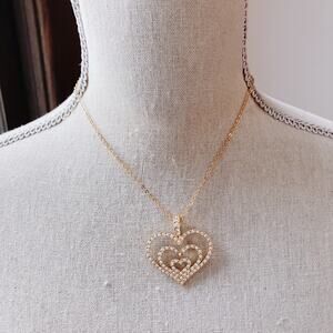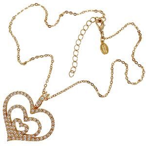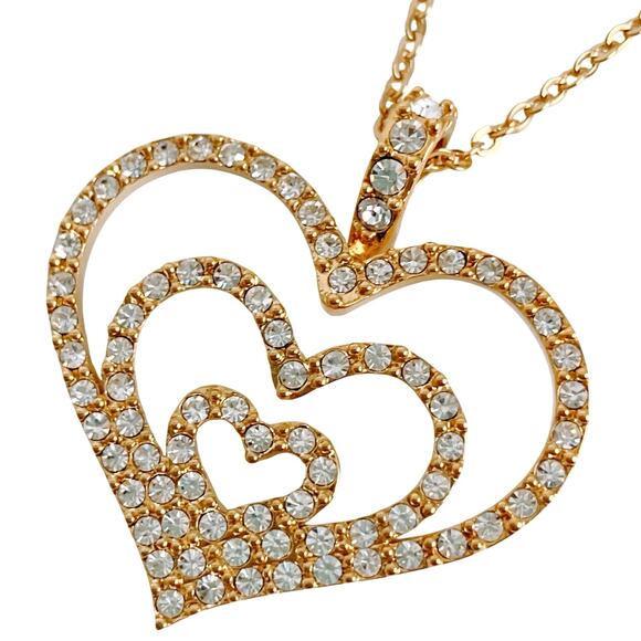 Signed Nolan Miller Gold Tone Triple Heart Rhinestone Pendant Necklace Vintage