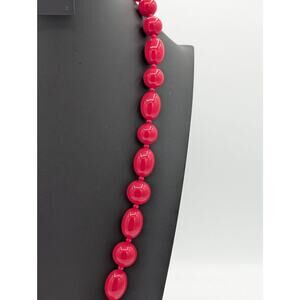 Signed OLCI 28" Long Heavy Lucite Deep Hot Pink Graduated Beaded Necklace