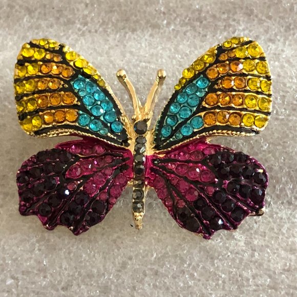 NWOT Signed OPC Vibrant Rhinestone Butterfly Pin Measures 1 /8" X 1 1/2"