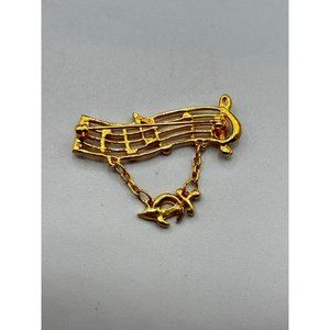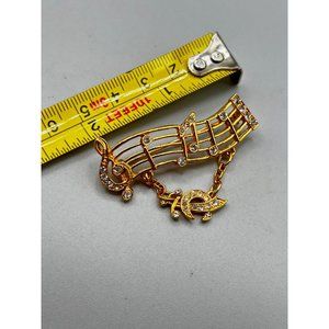 Tags: Signed ORA, Vintage brooch, Musical Pin, musical Brooch, music lover, musician gift, Dangling Charm, Gold Tone, rhinestone, music note, costume jewelry, musician jewelry, fashion pin