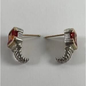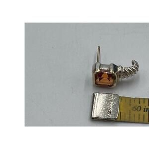 Signed Orange Citrine Sterling Silver 925, 14K yellow Gold Accent Shrimp Earring