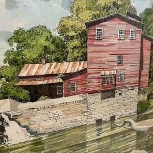 Coordinating matching set of drawings of the historic 1897 Hodgson Water Mill in Missouri.