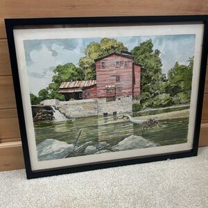 Signed Pen & Ink Watercolor Americana Red Barn Original Art 2pc Set of Paintings
