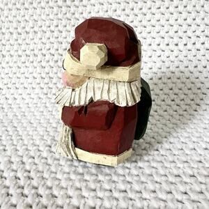Vintage. Sifned RJ Zeit 1996. Hand carved wood primitive folk art stout Santa figure with wire glasses. Preowned.