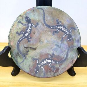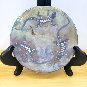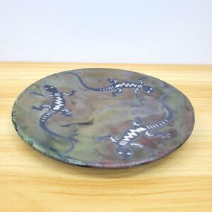 Signed Raku Pottery Plate by Brian Diller – 2005 Southwest Lizard Design
