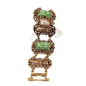 Signed Rare Rice Weiner Asian Molded Floral Glass Bracelet (A68)