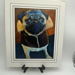 Signed Robert McClintock “The Aviator” Pug Print 13 1/2" x 10 3/4"