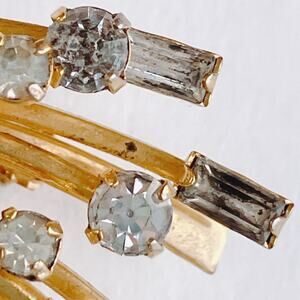 Materials: Gold-tone base metal; clear round and baguette-cut glass rhinestones
