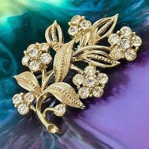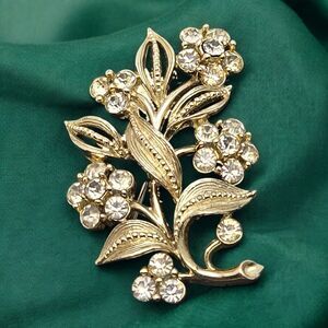 Zoom in on photos for details. You will receive the exact signed Lisner silver-tone brooch with matching earrings. Appearance may vary with lights, background, or screen. All photos are of the same items. Some photos make the jewelry set appear more gold than the actual color. The grouped photos with all three pieces best represent the actual color (more silver than gold). May show typical signs of wear. All three present in shiny and sparkly condition with no missing rhinestones. Earring clips are strong and stick pin on brooch is securely intact with easy open/close. A lovely vintage set to keep or gift. Enjoy!