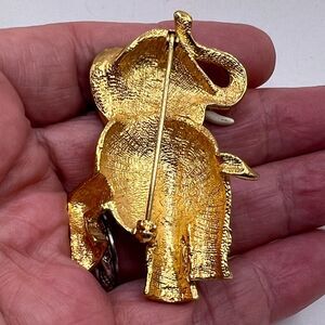 Signed Sphinx A2464 Rare Jeweled ELEPHANT BROOCH Pin Trunk Up Rhinestone Vintage