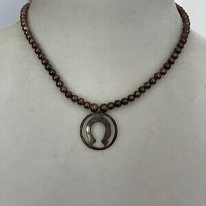 Signed Sterling 925 Lucky Horseshoe Artisan Beaded Equestrian Rodeo Necklace