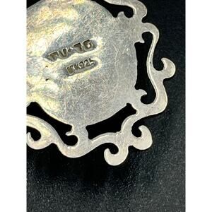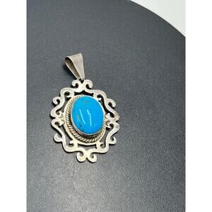 Signed Sterling Silver Oval Blue Turquoise Cabochon Scroll Filigree pendant TV-75 Mex 925
