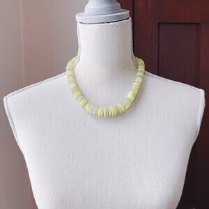 A strand of yellow-green chalcedony beads arranged in bold disc shapes gives this signed Jay King necklace its clean, confident presence. The soft translucence and natural variation in each bead lend an easy sense of depth, creating a piece that stands out through form and color alone. Its classic structure offers a timeless look with quiet substance.