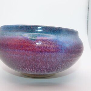 Signed Studio Pottery Bowl Two Tone Blue And Purple Glaze