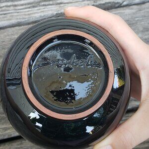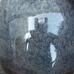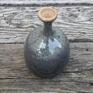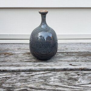 This is a signed glazed studio pottery. Beautiful shade of blue. For dried or fake flowers only. Great condition. No chips or cracks. Just a little imperfection. Comes from a non-smoking house.