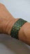 This stunning Susie Larsson designer bracelet is beautifully handcrafted with a luxurious mix of matte slate green seed beads and genuine 24K gold hex-cut beads and gold plated slide closure. The intricate woven design catches the light from every angle, creating a subtle yet striking statement piece.