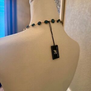 Signed Swarovski Blue Bezel Crystal Necklace , Vintage New with Tags