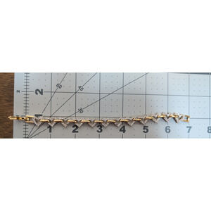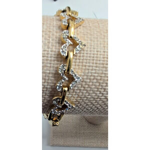 This Signed Swarovski Clear Crystal Heart Link Gold Tone Vintage 8” Bracelet is a stunning piece of jewelry perfect for any occasion. The bracelet features a beautiful heart-shaped crystal as the main stone, set in a gold tone metal chain. The foldover closure allows for a secure fit, while the adjustable sizing makes it suitable for any wrist. With its vintage appeal and timeless beauty, this bracelet is a perfect gift for a special someone or a unique addition to any jewelry collection.