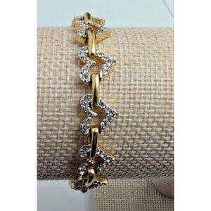 Signed Swarovski Clear Crystal Heart Link Gold Tone Vintage 8” Bracelet