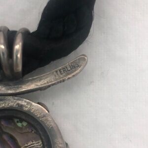 Pre-owned, very good condition. Light patina and surface wear consistent with handcrafted silver jewelry. No cracks or repairs noted. Please review all photos for condition and engraving details.