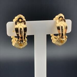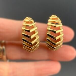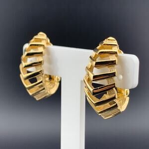 Signed Trifari Gold Tone Chevron Hoop Clip on Earrings 1.25"