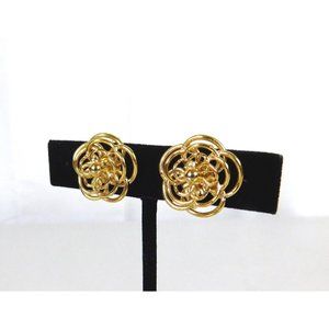 Signed Trifari Gold Tone Flower Swirl Earrings Comfort Clip on