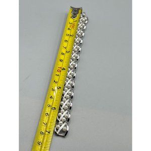 Signed Trifari Silver Tone and Faux Pearls Bracelet Long Textured Metal Links