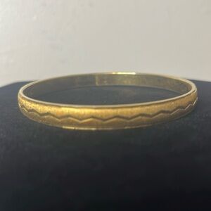 Signed Money textured gold tone etched zig zag bangle bracelet