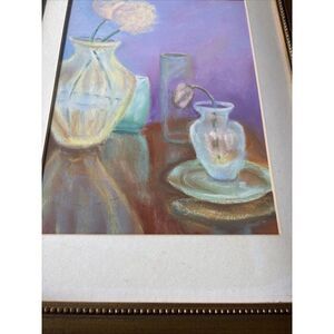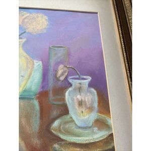 Signed Vintage Framed Pastel: Purple Floral Still Life