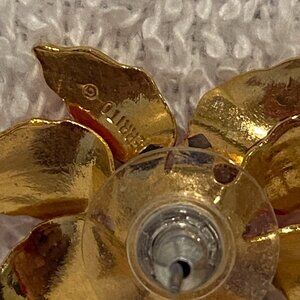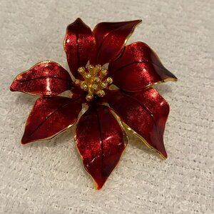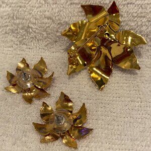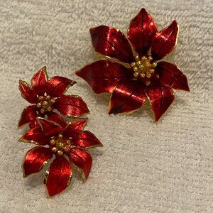 Signed Vintage Poinsettia Brooch and Pierced Earrings
