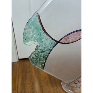 It is signed by the artist—please see the last photo. I wasn’t able to clearly read the signature. The piece is in excellent vintage condition. The jagged edges and crackled stye and shape are part of the original design—this is not broken or damaged.