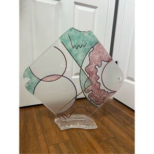 Signed Vintage crackled Abstract Acrylic Sculpture