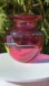This beautiful and colorful example of vintage glass artistry was produced, signed and dated by noted Glass Artist Peter Ridabock in 1993. This blown glass vase is approximately 3 3/4 inches in diameter, 4 1/4 inches high and weighs 1 pound 7 ounces. Peter Ridabock is an American glass artist known for his complex, hand-blown sculptural vessels and use of controlled designs. He has trained with some of the most influential figures in the studio glass movement including Dale Chihuly, David Huchthausen, and Toots Zynsky. His work is often inspired by natural imagery, such as ocean currents and sea life and is recognizable for its signature look, which involves meticulously planned designs using hand-blown glass shards, canes, and crystal "bits". This technique adds depth and a sense of dimension to his pieces. Ridabock's glass is noted for its substantial weight and a beautiful feel, reflecting his technical skill and artistry as exhibited in this vase. This vase is in excellent pre-cherished condition with no chips, cracks, breaks or repairs. Please note the magnified picture of the signature was taken utilizing a low intensity "orangish" light on a microscope, hence the clarity of the signature and the color of the vase in this picture. The 2 indoor photos with the ruler show the most accurate coloration of the overall vase which is a “cranberry glass.”