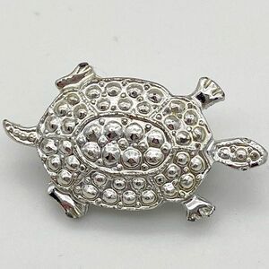 Signed silver tone textured turtle pin brooch