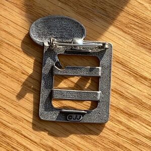 You can insert a picture of your grandchild or grandmother in this silver pewter. Made in the U.S.A. and signed J.J. It is long retired.