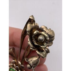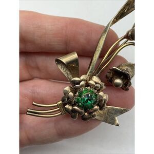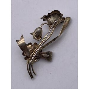Signed LS Co Brooch 1/20 12K GF on 800 Silver LOUIS STERN Rhinestones Flower Pin