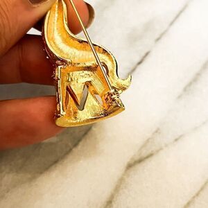 Signed Napier Circus Seal Brooch Vintage Gold Rhinestone Crystal Red RARE