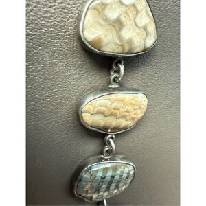 • Solid sterling silver with free‑form beige/tan stones arranged organically