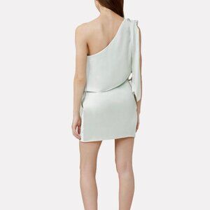 Tied in lustrous satin along a fluid one-shoulder, the label's Azure mini dress is tailored for a night out with a fitted silhouette. Side zip closure.