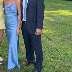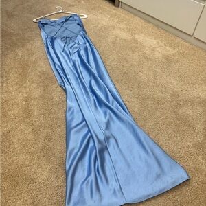 Significant other brand blue dress. Worn once. Very small stain on the bottom back of the dress. Fits somewhere between size 2 and size 4