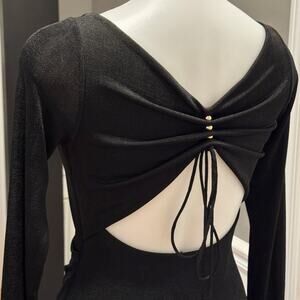 Significant Other Bambi Long Sleeve Cut Out Back Ruched Black Maxi Dress Size 4