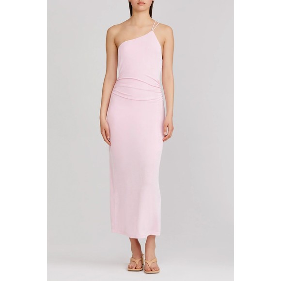 Significant Other Bella One Shoulder Midi Dress 10 Pink Stretch Slip Fitted New