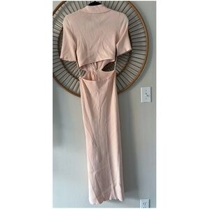 Crafted from our luxe ribbed knit fabrication, the Delta Knit Dress in Apricot is designed to be fitted at the bodice and relaxed toward the hem. Button front closure, cut-out detail at the waist, and t-shirt-style sleeves. Pair with white sneakers or slides for an everyday look.