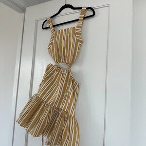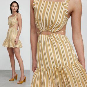 Significant Other Eadie Cut-out Mini Dress Sz 4 In Yellow Striped Ruffle Skirt