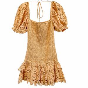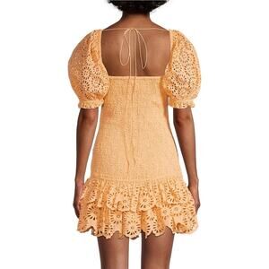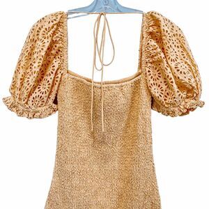 Light Tangerine, Smocked, Mini, Puff Sleeve, Eyelet, Summer, Vacation, Resort, Brunch, Ruffle Hem, Feminine, Casual
