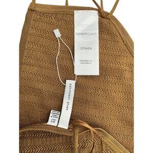 Significant Other 'Hania' Tan Viscose Top Size 2: halterneck and back tie closures, lightweight knit fabric, measurements: 15 inch bust x 11 inch length.