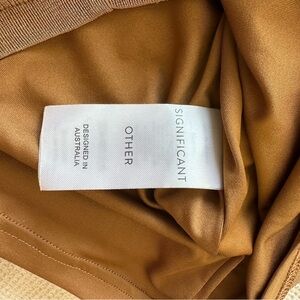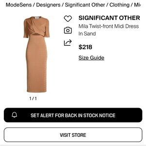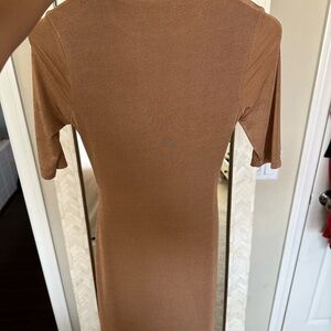Step out in style with this elegant tan midi dress featuring a chic cut-out design. Perfect for any occasion, this dress offers a sophisticated look with a modern twist. Absolutely stunning dress! Perfect dress for a wedding! Super stretchy so fits a size 4 and a size 6. Currently sells for $218. #luxury #revolve #significantother #weddingguest #weddingseason #quietluxury #fallwedding #falldress #winterwedding #luxury