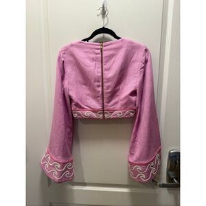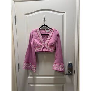 Significant Other Nara Linen Crop Top in Taffy Pink with Embroidered detail Size 4 NWT