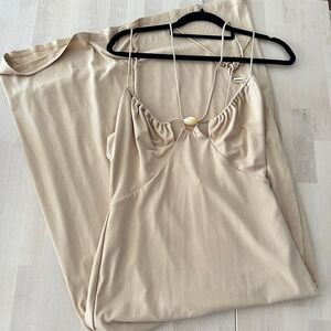 Significant Other Alma sand beige tan cut-out midi dress from Revolve.