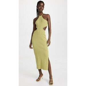 A fresh color way this season - the Skye Midi Dress in Avocado is crafted from our luxurious ribbed knit fabrication. Designed to be fitted through the bodice and relaxed toward the hem, this piece features a halter neckline, side bodice cut outs and cut out petal detail along the backline. Great condition!